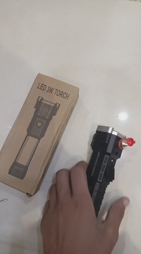 High-power Led Torch Rechargeable Flashlight with Tactical Hammer & Phone Power Bank – with Box (Random Colour )