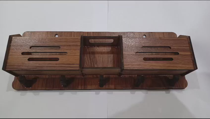 Keep your essentials organised and your space looking great with this beautifully crafted wooden wall-mounted key holder. Designed for both function and style, it's a perfect addition to any home or office.